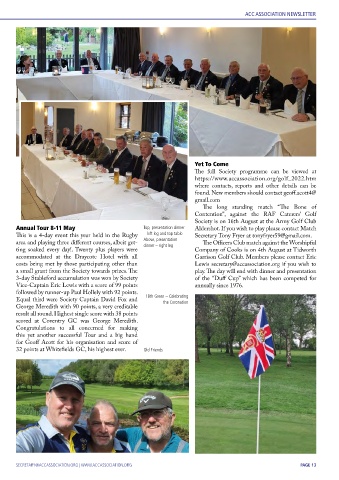 Annual Tour 8-11 May Top, presentation dinner Aldershot. If you wish to play please contact Match