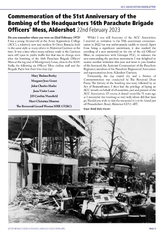 Sadly, the following six Officers’ Mess civilian staff and the of the bereaved, the Assistant Commandant of the Parachute