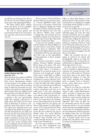 vice, he completed 2 tours of Gibraltar but a few places. he went. Gordon realised early on that In his day he represented the Army 7 grandchildren and 3 great grandchil-