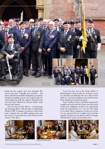 How very British to start with the weather, the body of ex ACC marching. Corps Sunday in 2023 behalf for the support they have provided. The Lunch this year was at the Aviator Hotel in