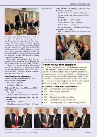 from newcomer Gary East. organising the tours and in his role as society treasurer. Unfortunately, Geoff